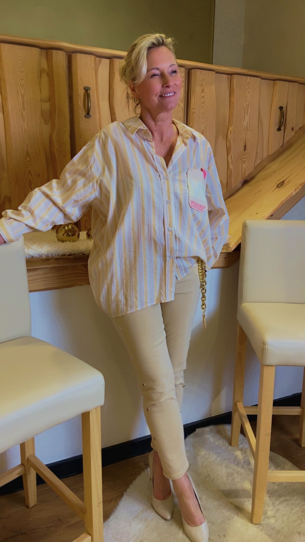 Softes Streifenmuster und liebevolles Details auf der Brusttasche
