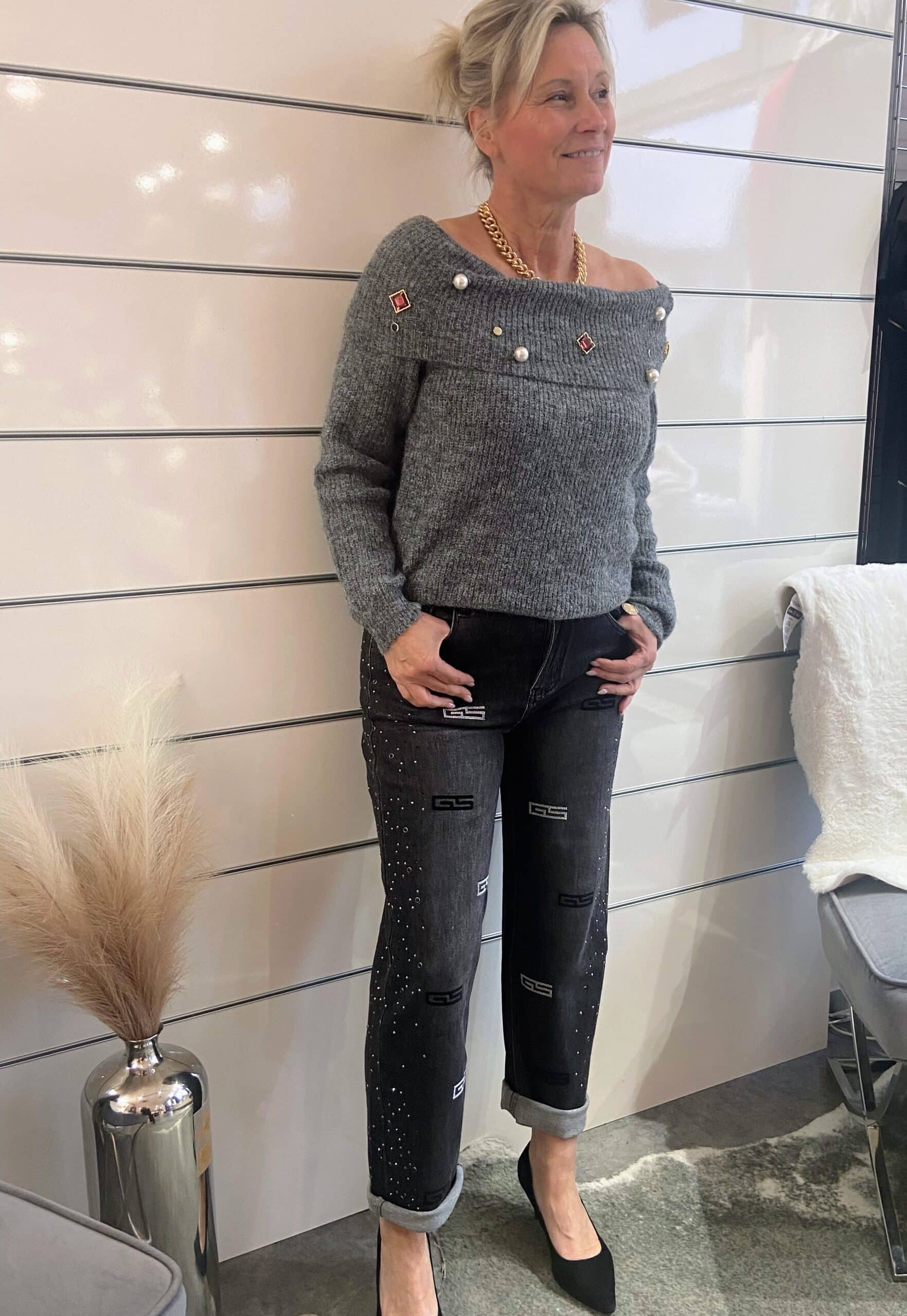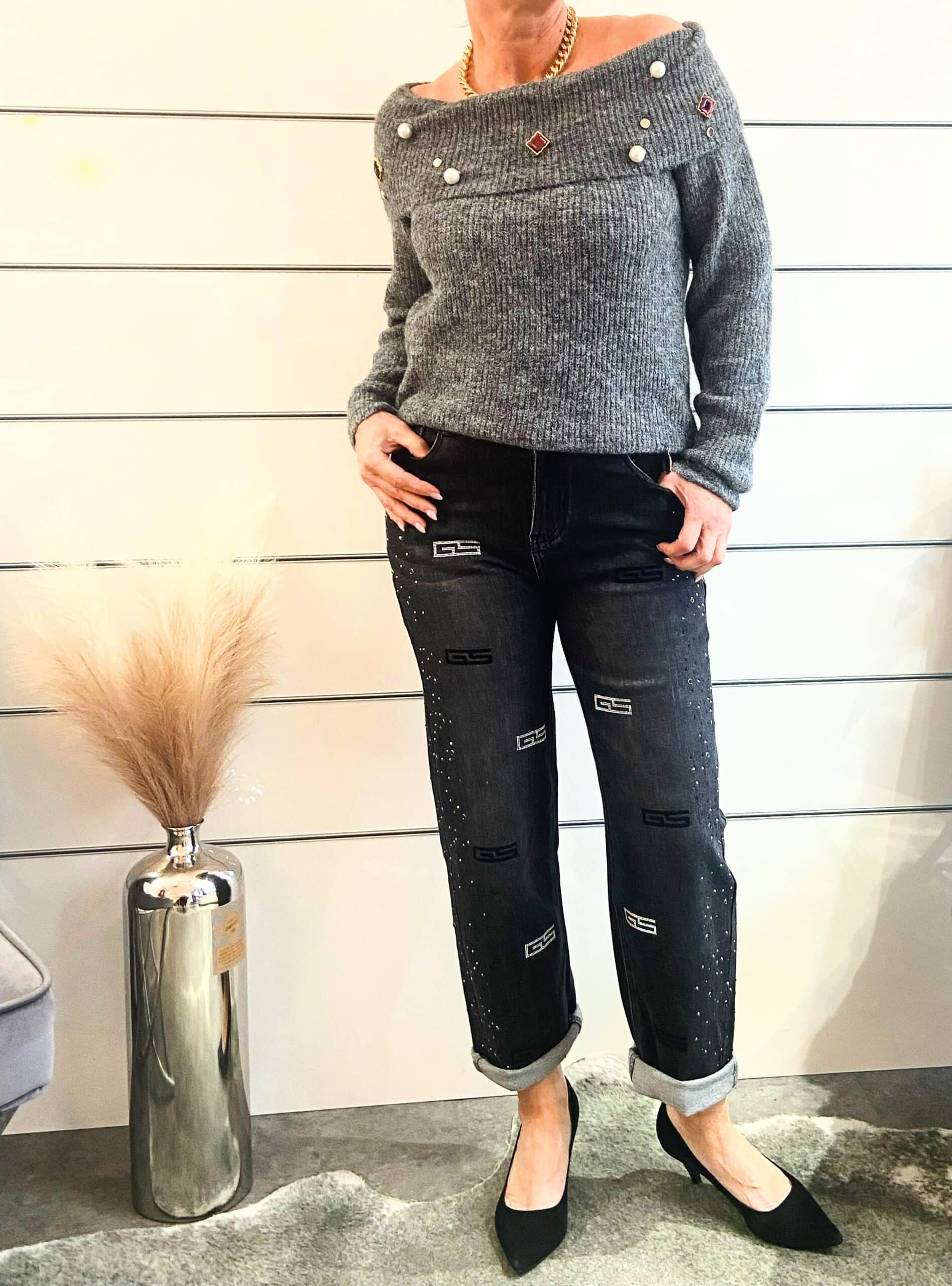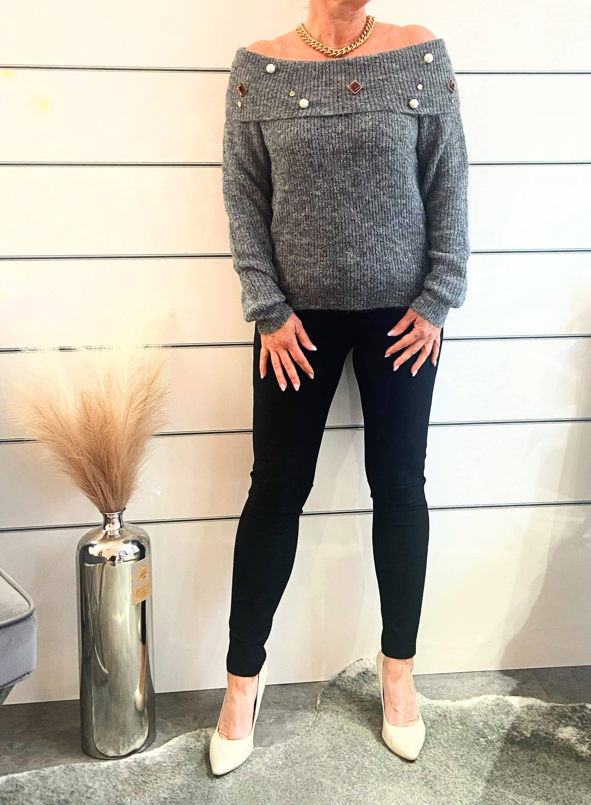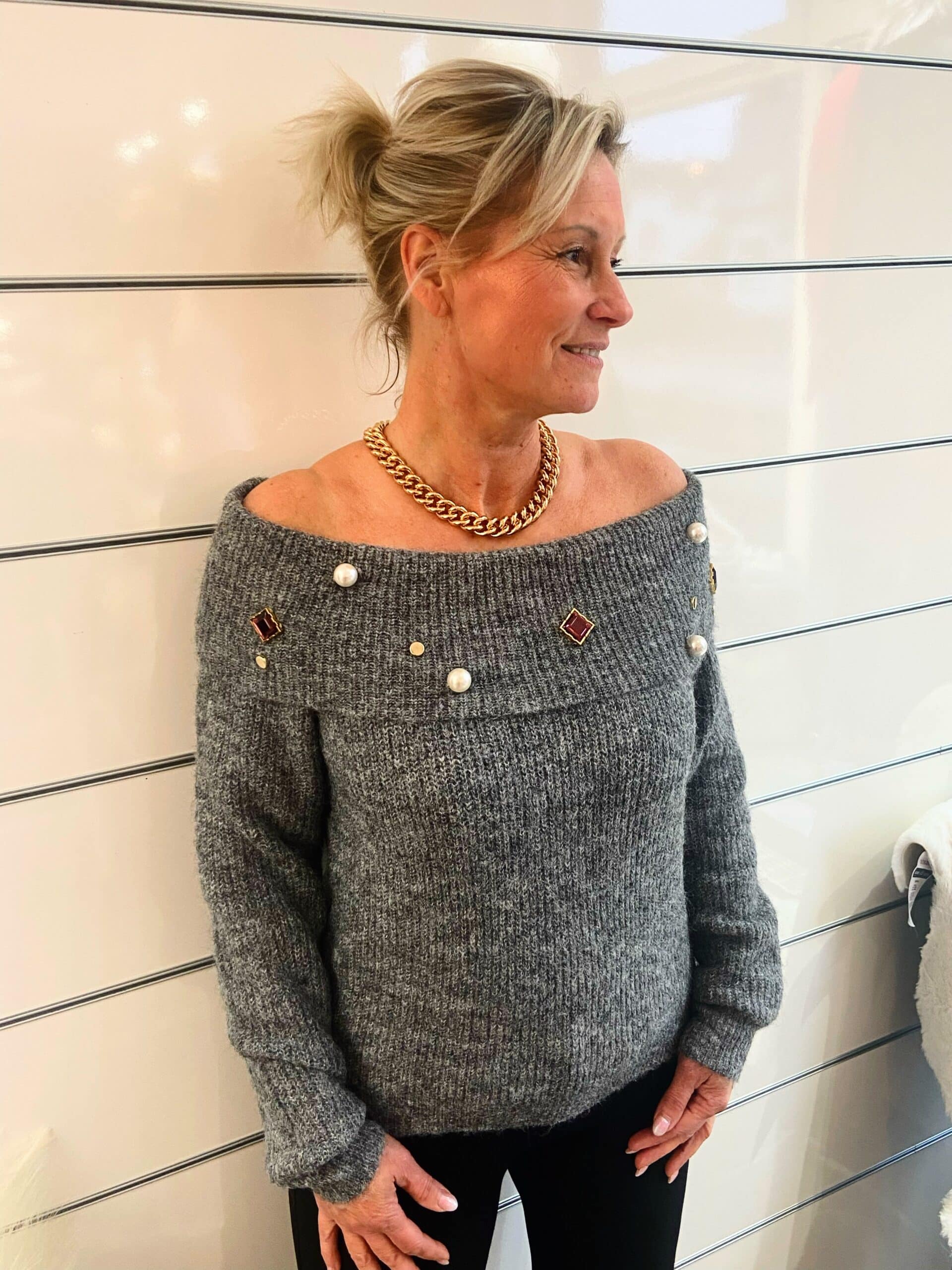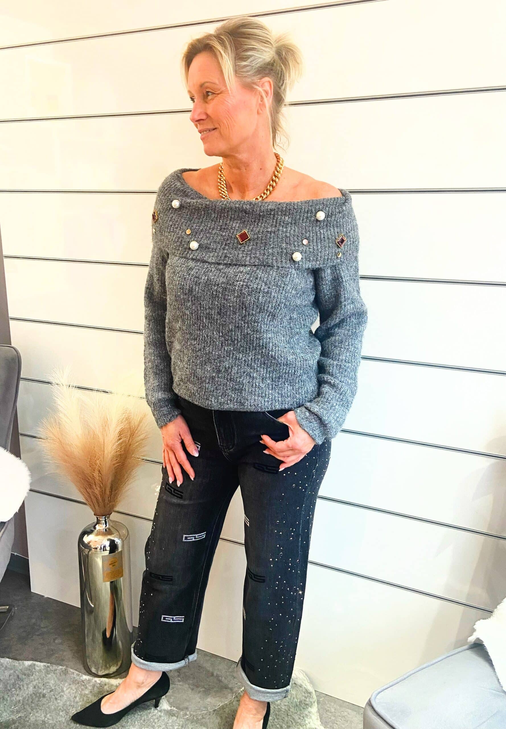 Auffäliger Kragen mit Perlen und Schmucksteinen