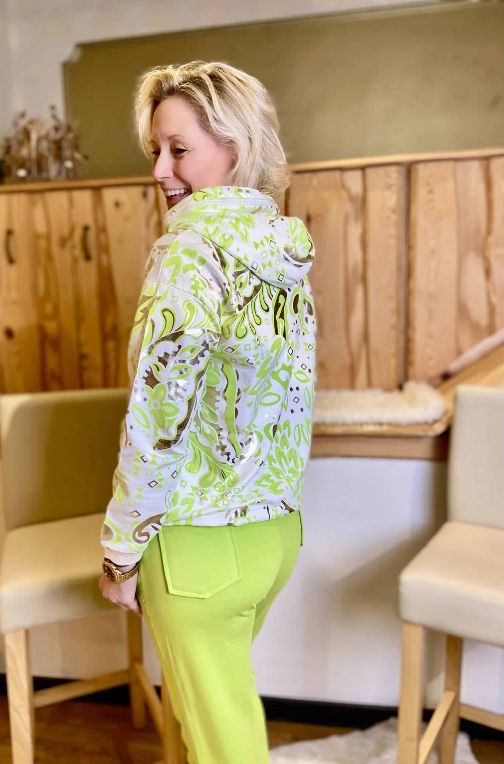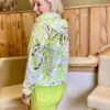 Heller weißer Grundton mit aufwendigen Muster in Limegrün