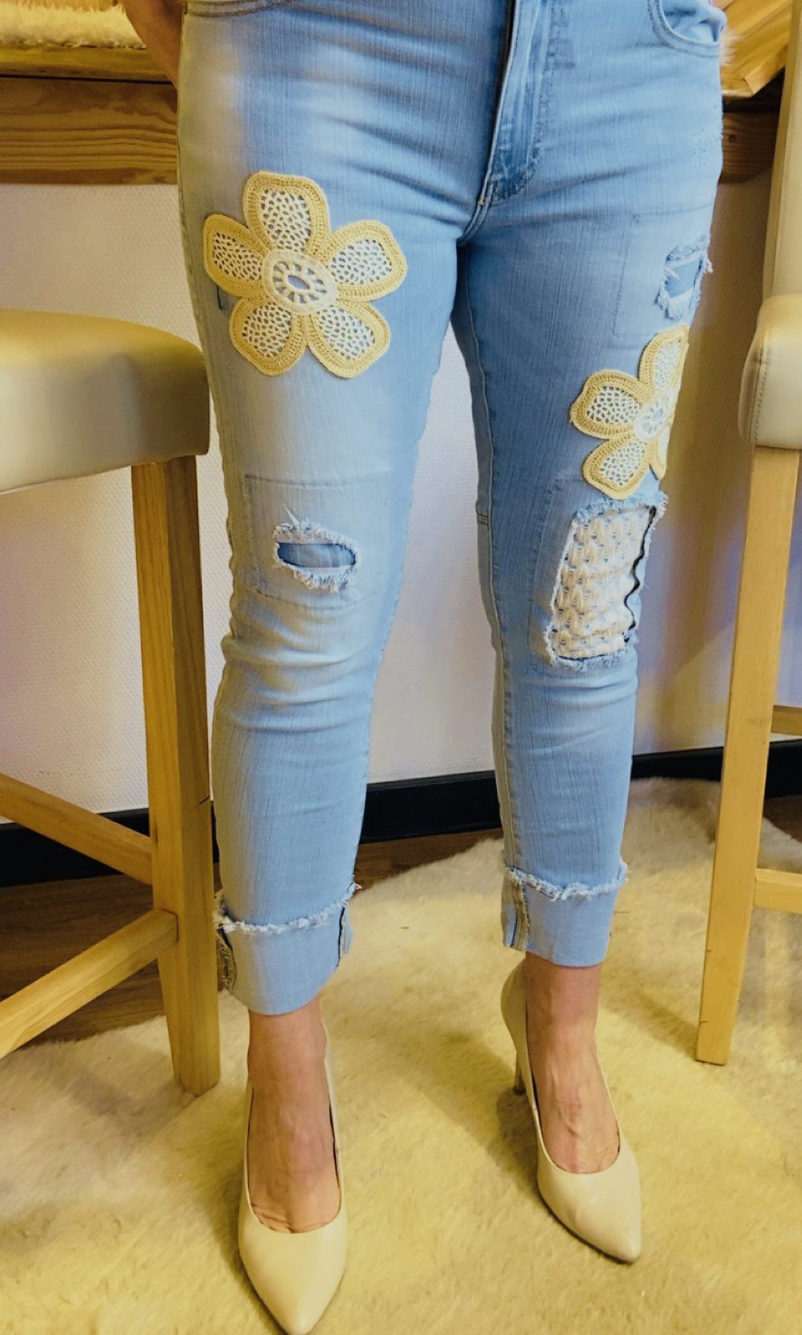 Blumen Statement Jeans in Hellblau