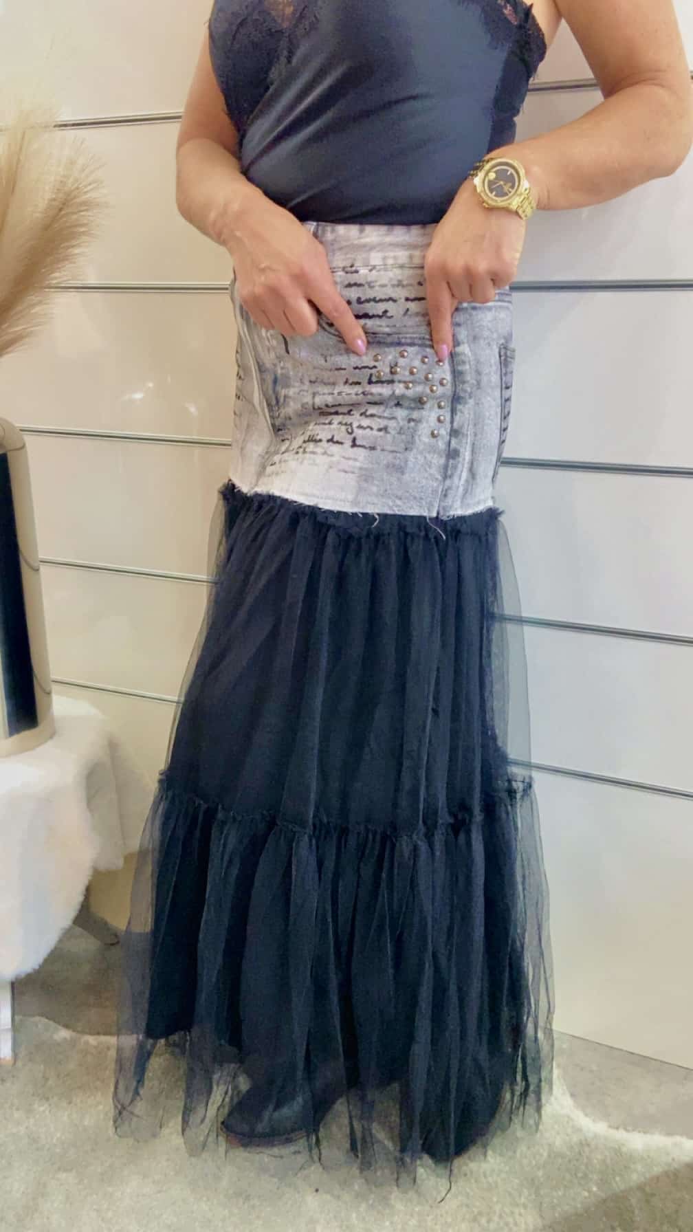 Elastischer Bund in Jeansoptik mit Schriftprint