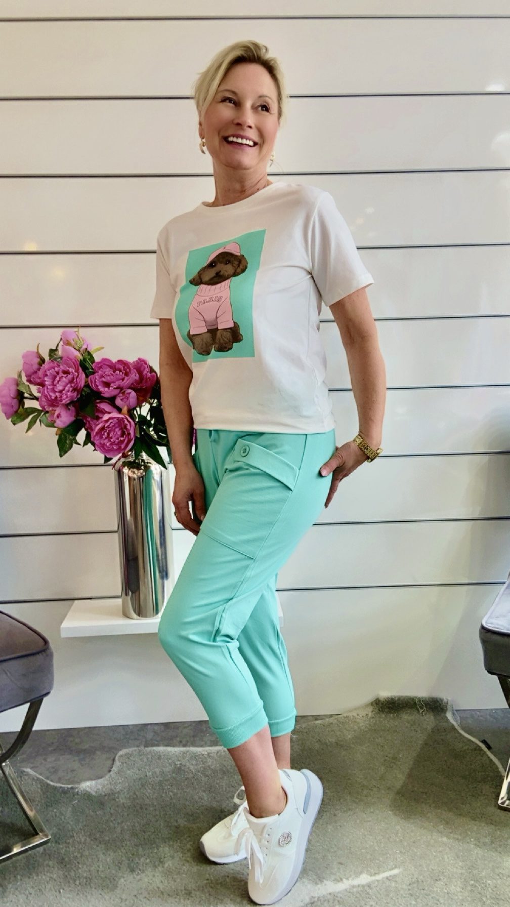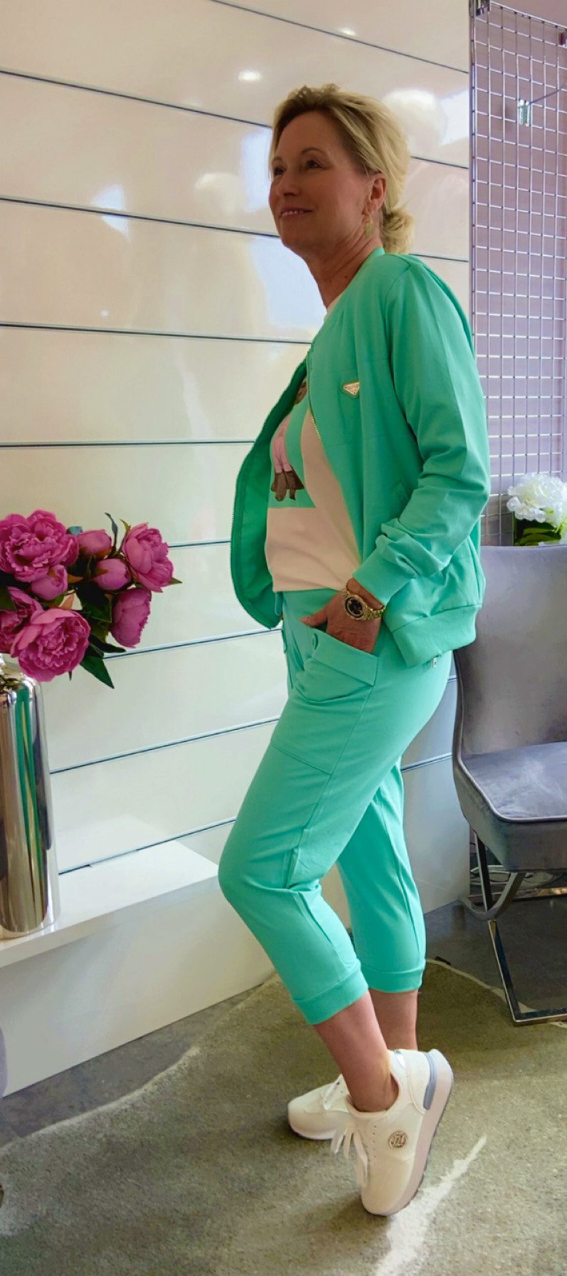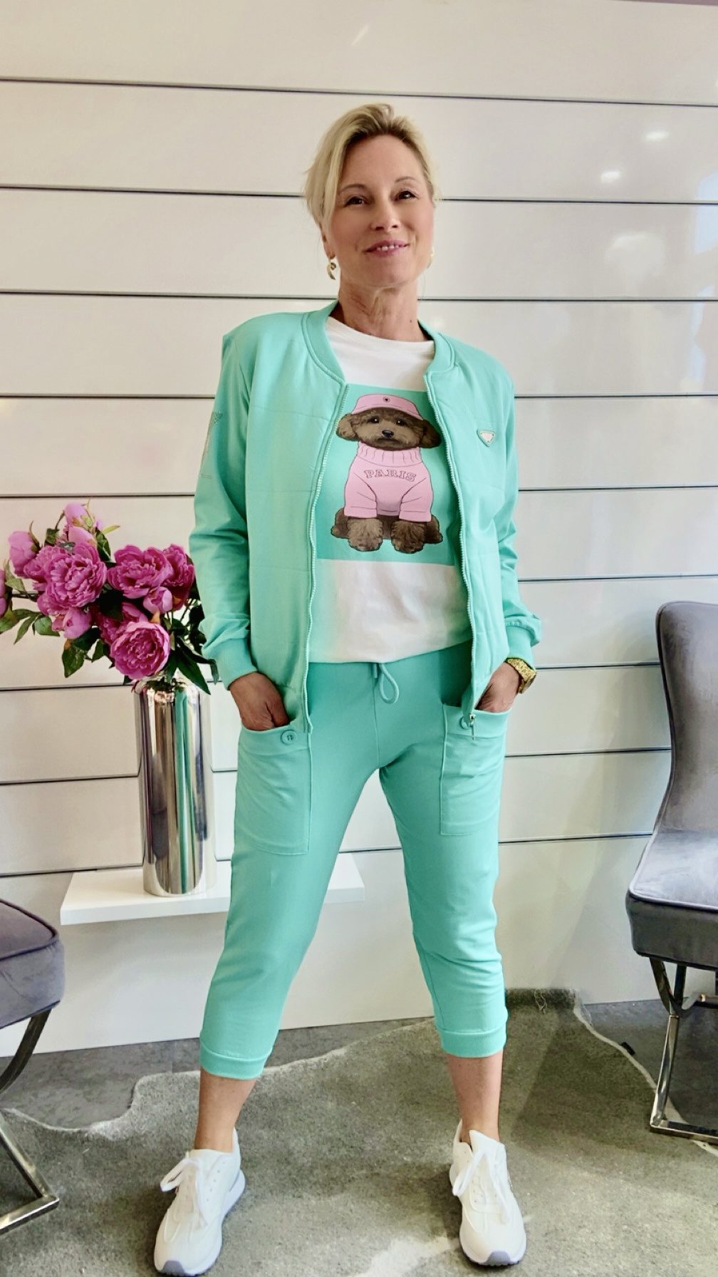 Stylische Joggpants in modernen Mintton mit angesagten aufgesetzten Taschen