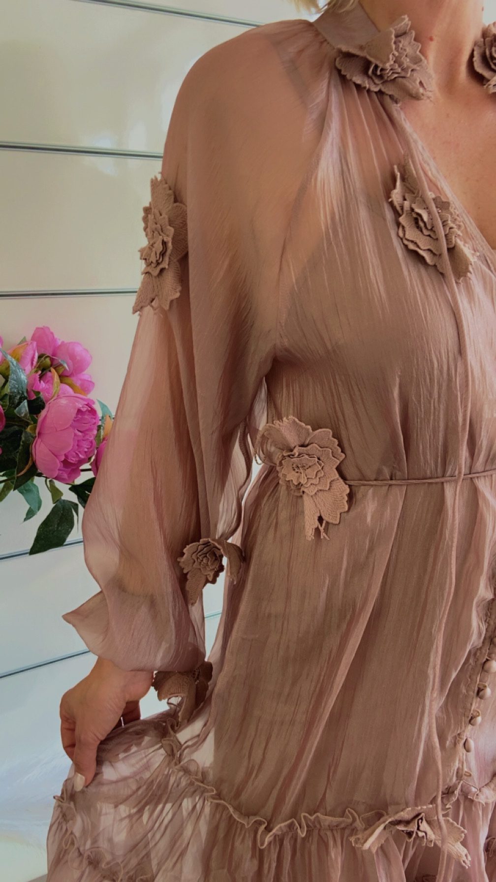 Verspielt 3D-Blütenapplikation und feine Rüschen sorgen für einen romantisch-femininen Look