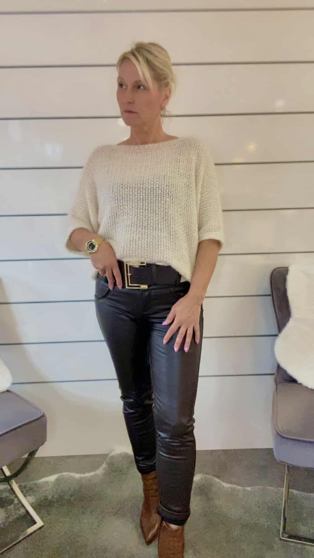 Kunstlederhose in Schokobraun mit breiten Gürtel