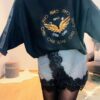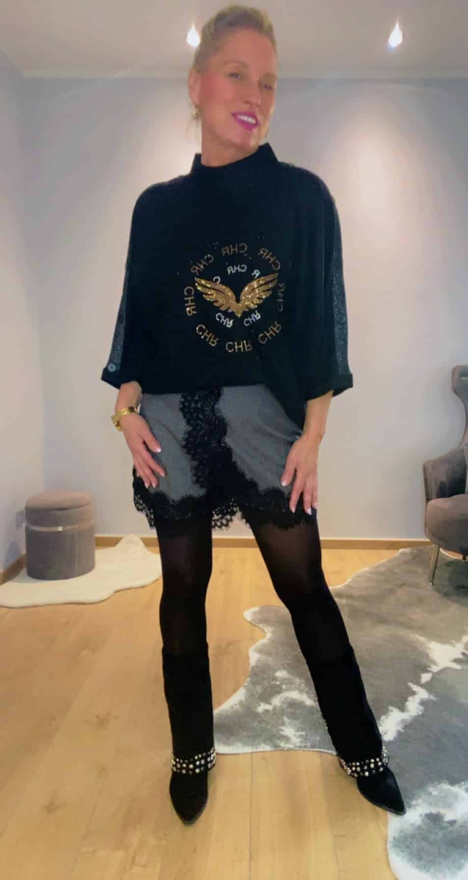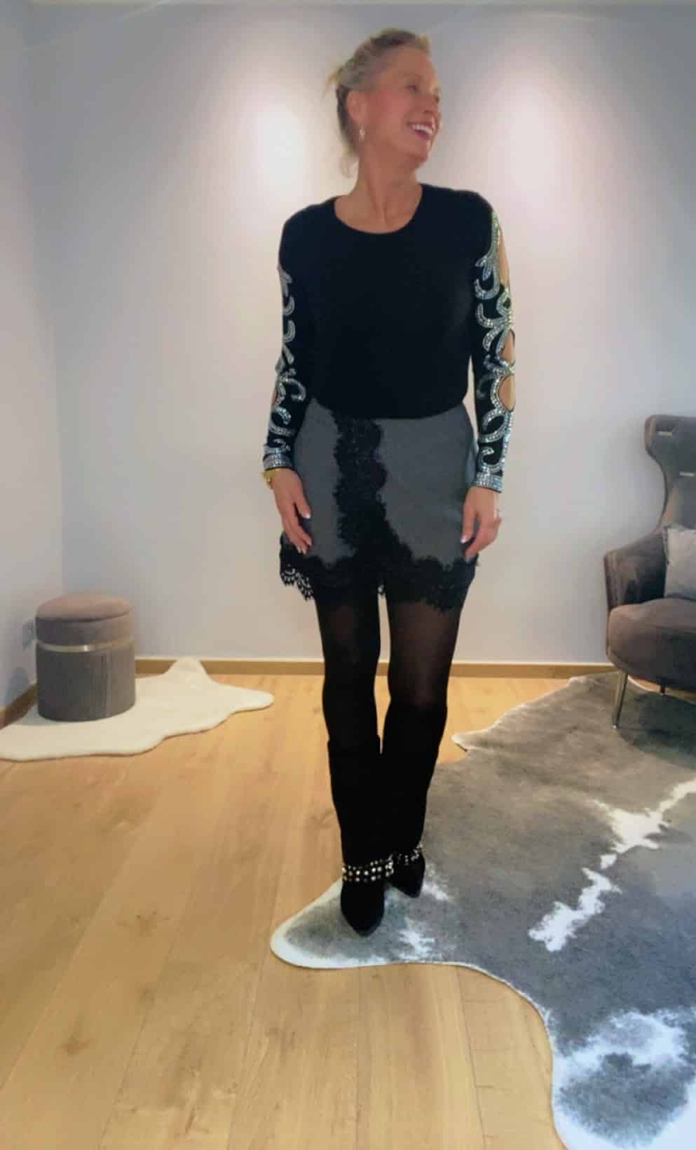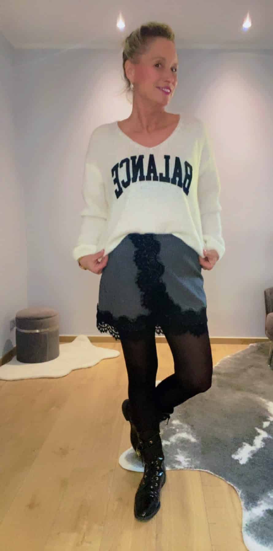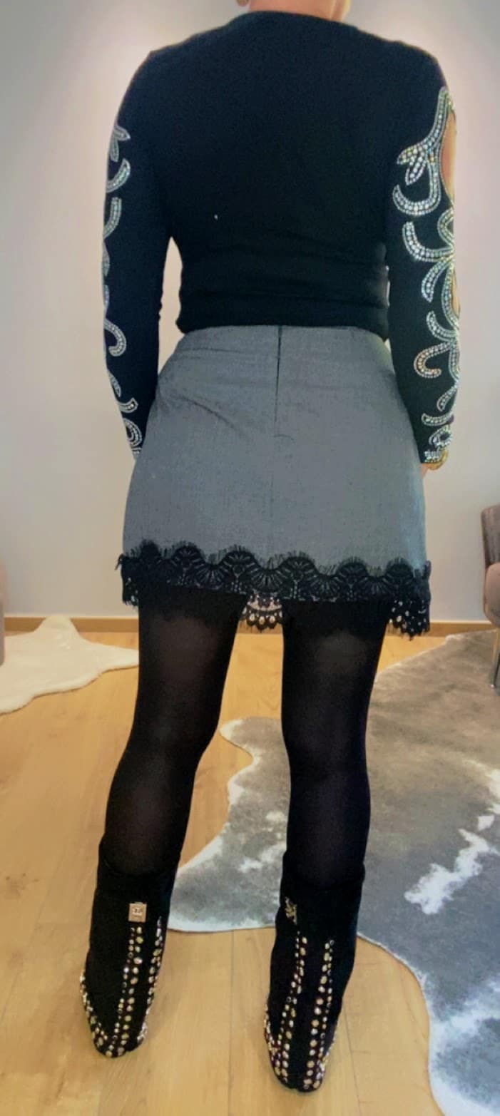 Rock in Grau mit raffinierter schwarzer Spitzenborte