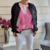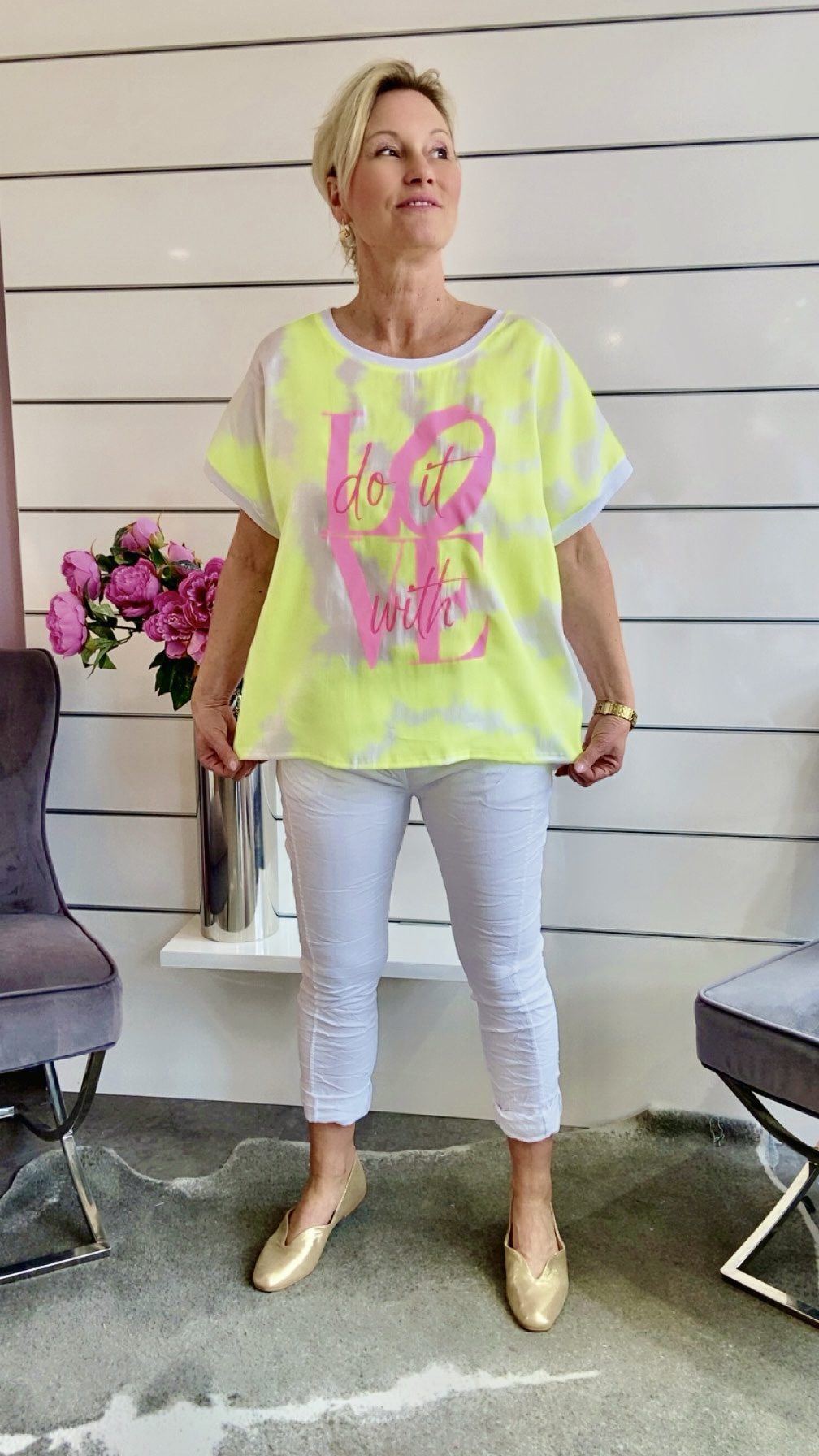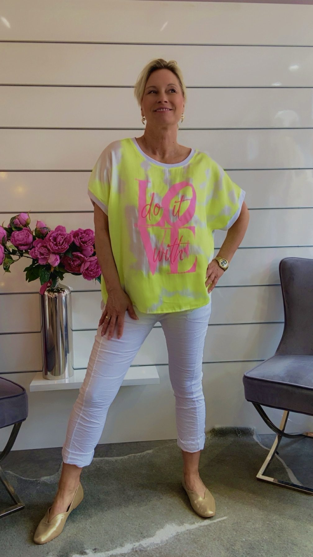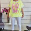 Stylisches Shirt in angesagtem Neon-Gelb oder Pink mit auffälligem Print – perfekt für selbstbewusste Looks