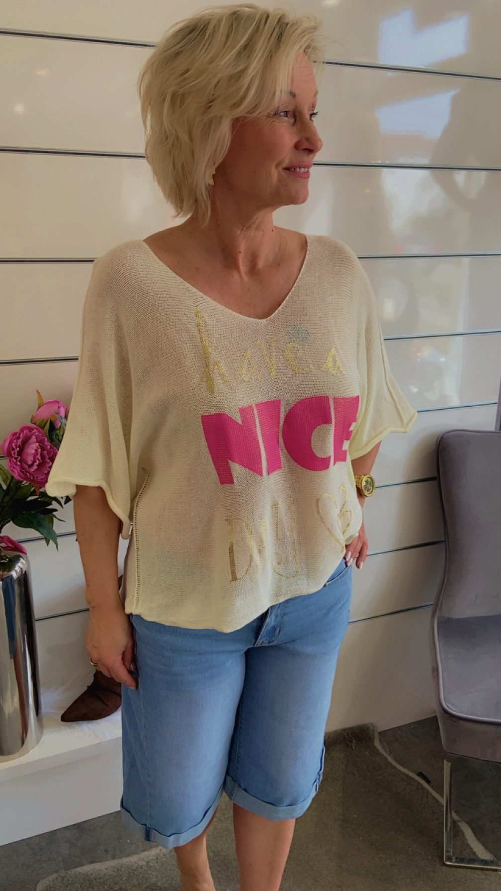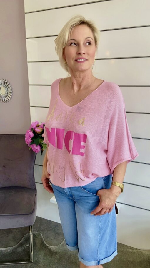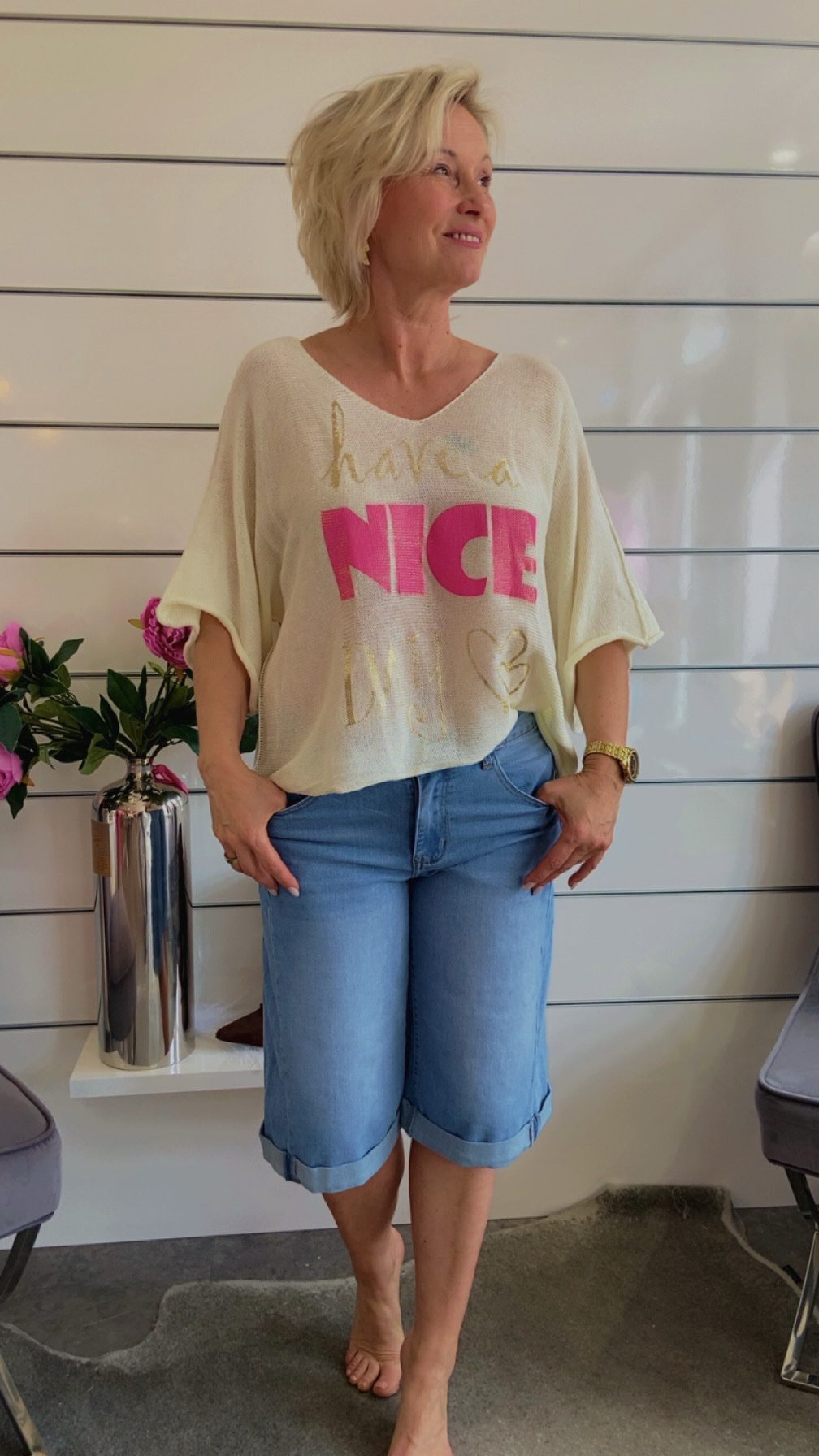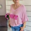 Kombination aus Schriftzügen und Herzdetails, sorgt für femininen, frischen Style