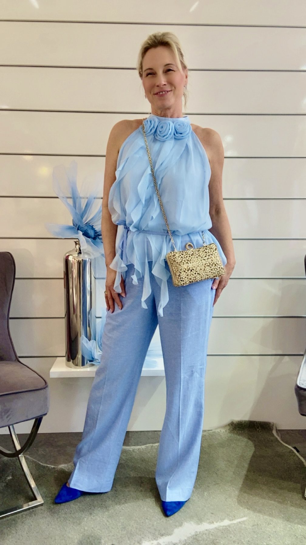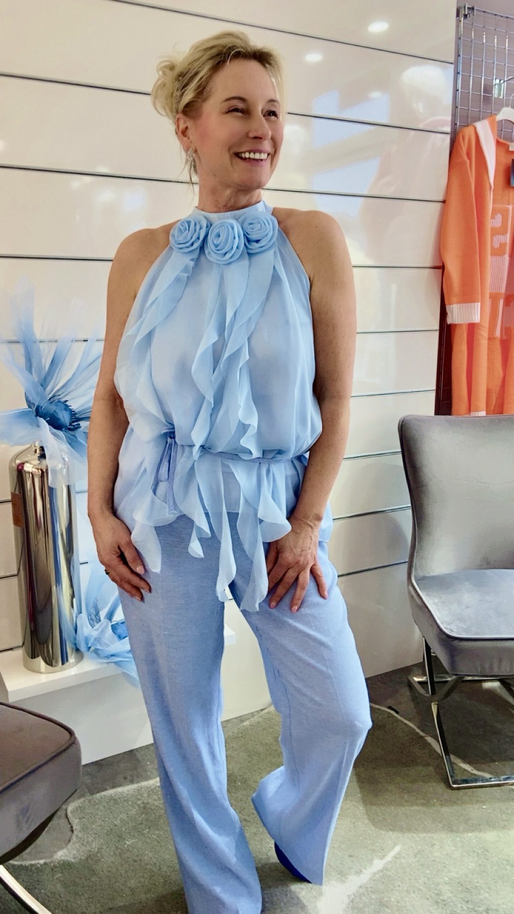 Luftiges, fließendes Top mit auffälligen 3D-Blüten am Ausschnitt- ein echter Hingucker für stilbewusste Frauen
