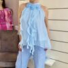 Zarter Stoff mit verspielten Volants sorgt für eine schmeichelhafte Silhouette und angenehmen Tragekomfort