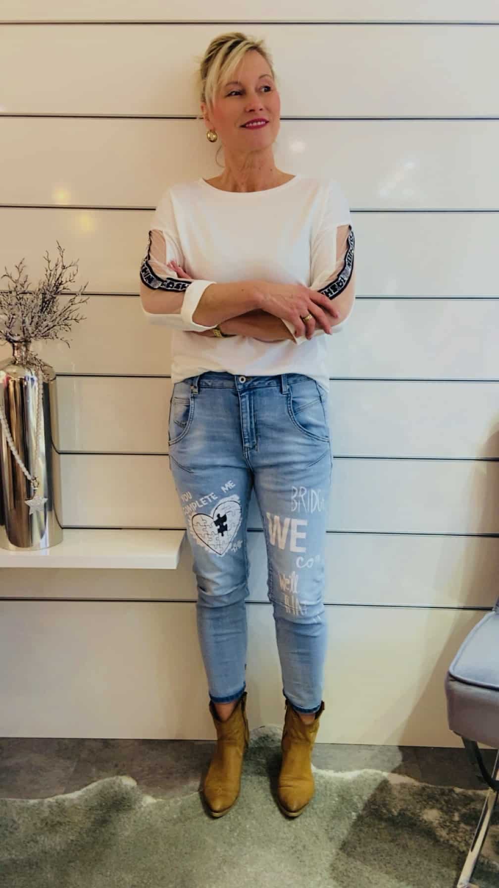 Mesh – Einsatz am Arm mit Glitzer Streifen